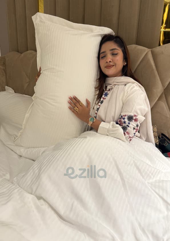 Hilton Side Pillow Imported Satin Stripe White Cotton (32/38 inch) – 1,700 tk